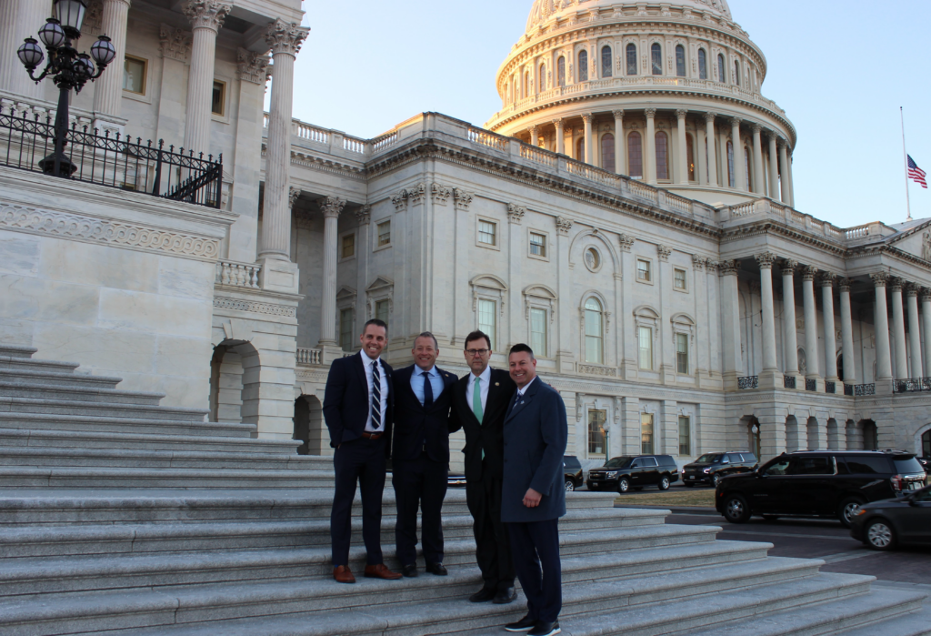 Above: Rep. Gottheimer and Rep. Kean, Jr. stand with Seton Hall alumni Brian Fitzpatrick and Craig McGraw.