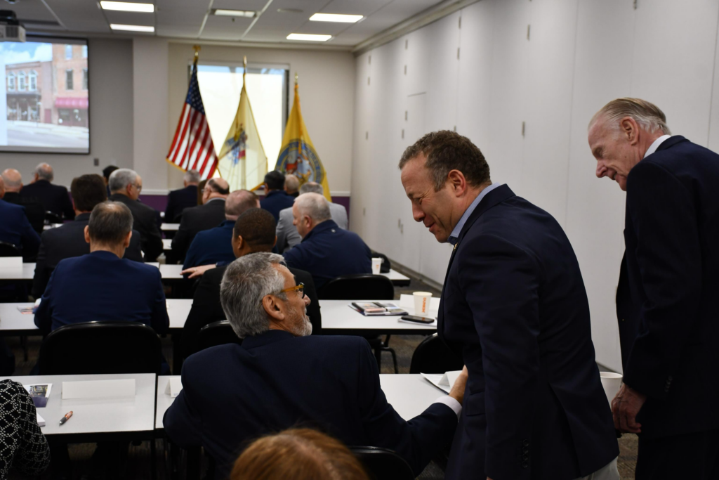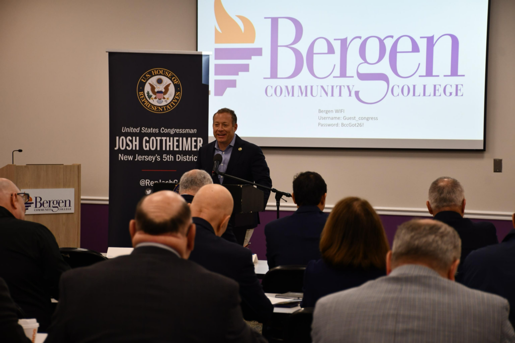 Above: Rep. Gottheimer addresses North Jersey mayors at Bergen Community College