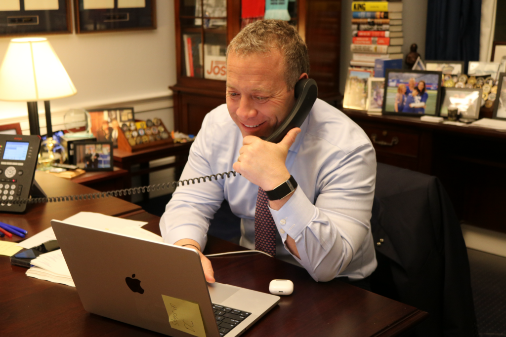 Above: Gottheimer conducts a Telephone Town Hall with North Jersey residents.