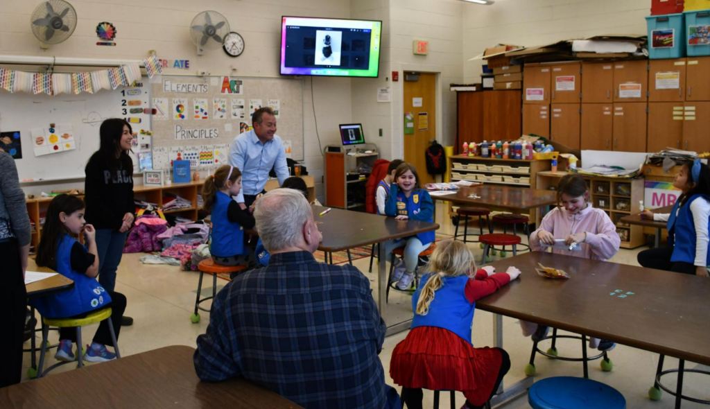 at Washington Elementary School to discuss the importance of government and how it works. During the visit, Gottheimer spoke with the scouts about the role of public service, how laws are made, and why civic engagement is essential to strengthening communities.