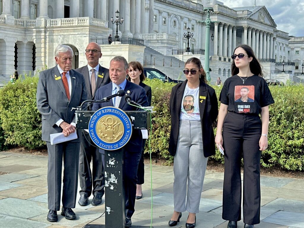 Joining the Members of Congress at the U.S. Capitol today were Ilana Gritzewsky, a freed hostage and partner of current hostage Matan Zangauker; the cousin of current American hostage Omer Neutra, Yasmin Magal; American Jewish Committee (AJC) CEO Ted Deutch, Jewish Women International (JWI) CEO Meredith Jacobs, the Jewish Federations of North America (JFNA), and the Foundation for Defense of Democracies (FDD).